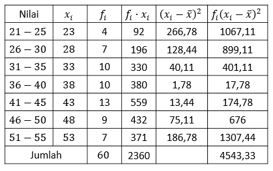Simpangan baku dari data di atas adalah ....
