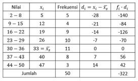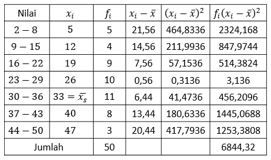 Simpangan baku dari data di atas adalah ....