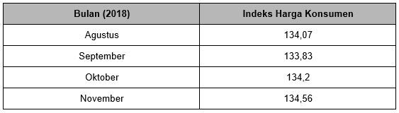 Berdasarkan tabel tersebut, tingkat inflasi (dalam persen) pada bulan Oktober dan November masing-masing sebesar ….