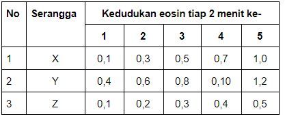 Perhatikan tabel berikut! Tabel berikut menunjukkan hasil pengukuran konsumsi oksigen dari 3 serangga, X, Y, dan Z tiap dua menit.