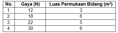 Tekanan terbesar sesuai dengan tabel di atas adalah ....