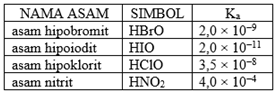 Urutan asam dimulai dari yang paling lemah adalah ....
