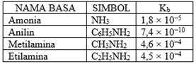 anilin > amonia > metilamina > etilamina