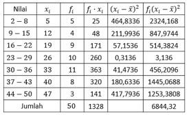 Variansi dari data di atas adalah ....