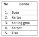 Benda-benda yang dapat menyerap bunyi ditunjukan oleh nomor ….