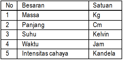 Berdasarkan tabel di atas, besaran yang menggunakan satuan Sistem Internasional (SI) yang tepat ditunjukkan oleh angka ....