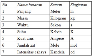 Pada tabel di atas, yang termasuk besaran pokok, satuan, dan alat ukur dalam Sistem Internasional (SI) yang benar adalah ....