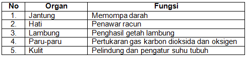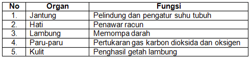 Pasangan organ dan fungsinya yang benar adalah nomor...