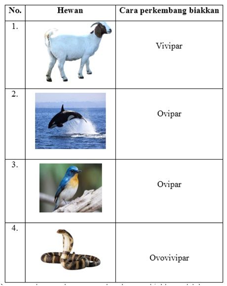 Pasangan yang benar antara hewan dan cara perkembangbiakkan adalah ...