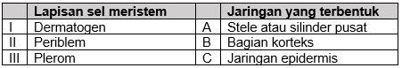 Pasangan yang tepat untuk tabel di atas berdasarkan teori titik tumbuh histogen adalah ….