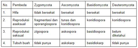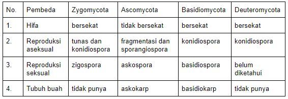 Perbedaan antara zygomycota, ascomycota, basidiomycota dan deuteromycota yang tepat ditunjukkan oleh nomor ….