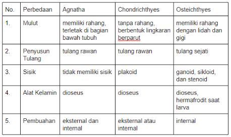 Perbedaan yang tepat antara agnatha, chondrichthyes dan osteichthyes ditunjukkan oleh nomor ….