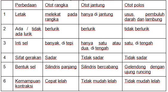 Perbedaan yang tepat antara otot rangka, otot jantung dan otot polos ditunjukkan oleh nomor ….