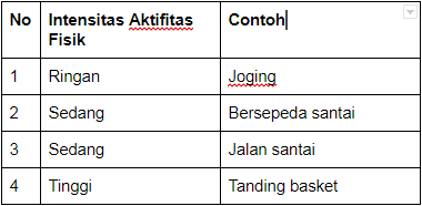 Pernyataan yang benar terkait intensitas aktivitas fisik dan contohnya yang tepat adalah…