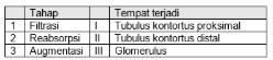 Pasangan yang tepat antara tahap dan tempat terjadi pada proses pembentukan urine adalah ….