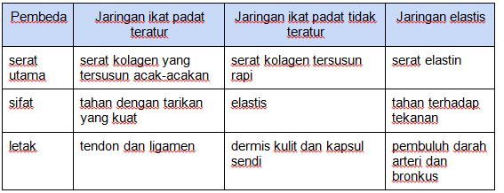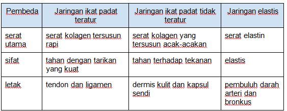 Pembeda yang benar untuk ketiga jenis jaringan ikat padat diatas adalah ….