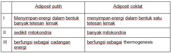 Perbedaan yang tepat antara adiposit putih dan adiposit coklat adalah ….