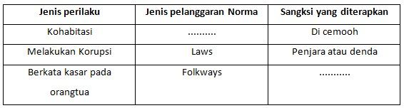 Untuk melengkapi bagian yang rumpang pada tabel diatas maka isian yang benar adalah... .