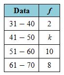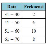 Jika kelas modus adalah 51 − 60 dan modusnya adalah 56,5. Maka nilai k adalah….