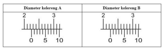 diameter kelereng A adalah 2,03 cm dan B 2,28 cm