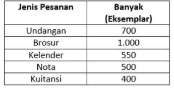 Perhatikan tabel jenis pesanan di percetakan seribu warna berikut.