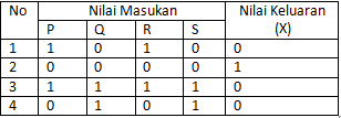 Jika terdapat empat nilai masukan seperti pada tabel, maka nilai keluaran yang benar adalah ….