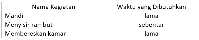 Perhatikan tabel kegiatan yang dilakukan Lili sebelum berangkat ke sekolah berikut!