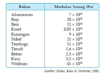 Perhatikan tabel modulus Young beberapa jenis bahan di atas!