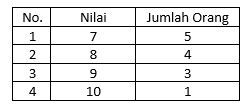 Perhatikan tabel nilai ulangan matematika kelas III berikut!
