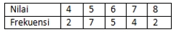 Perhatikan tabel nilai ulangan matematika SMP Kelas 8 berikut!