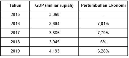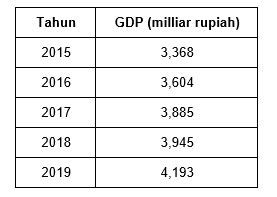 Perhatikan tabel PDB Indonesia tahun 2015-2019 berikut ini!
