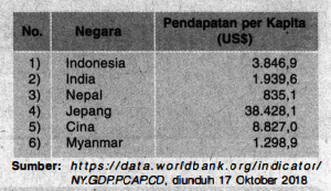 Perhatikan tabel pendapatan per kapita tahun 2017 berikut!