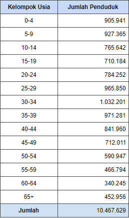 Perhatikan tabel penduduk di Jakarta tahun 2018 berikut ini!