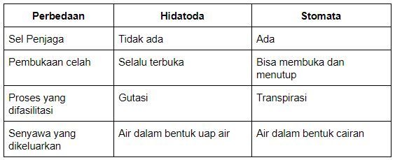 Perhatikan tabel perbedaan antara hidatoda dan stomata berikut ini!