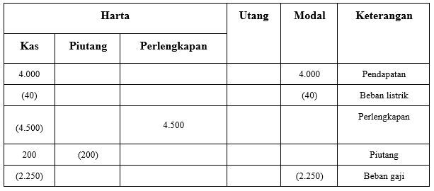 Perhatikan tabel persamaan dasar akuntansi berikut!