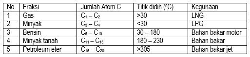 Perhatikan tabel senyawa hidrokarbon berdasarkan titik didihnya!