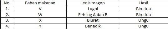 Perhatikan tabel uji bahan makanan di bawah ini.