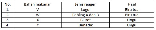 Perhatikan tabel uji bahan makanan di bawah ini.