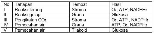 Perhatikan tahapan fotosintesis berikut ini
