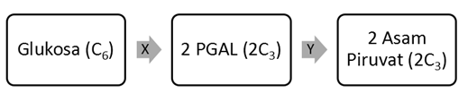 X membutuhkan 2 ATP, Y menghasilkan 4 ATP dan 2 NADH