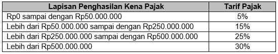 Perhatikan tarif pajak penghasilan berdasarkan Undang-Undang Nomor 36 Tahun 2008 berikut!