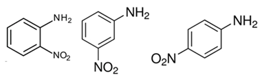 Jika dari kiri ke kanan berturut-turut struktur A, B dan C, maka produk nitrasi anilin adalah ….