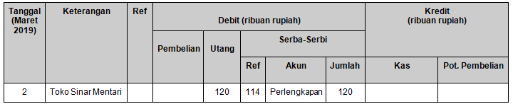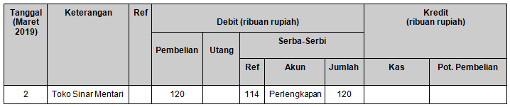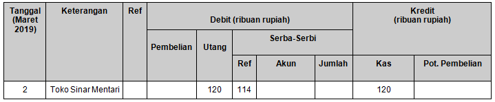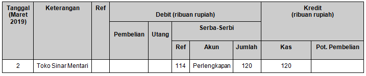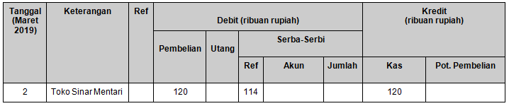 Pencatatan transaksi tanggal 2 Maret 2019 yang benar adalah ….