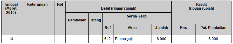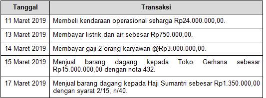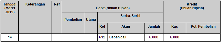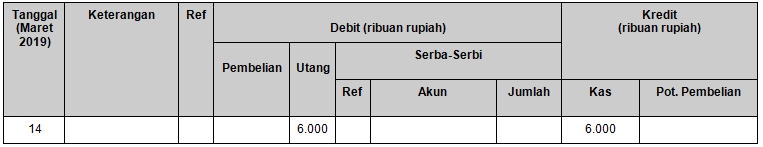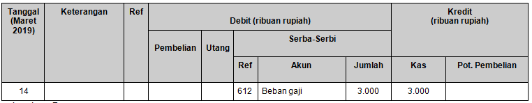 Pencatatan transaksi tanggal 14 Maret 2019 yang benar adalah ….