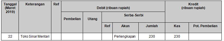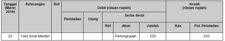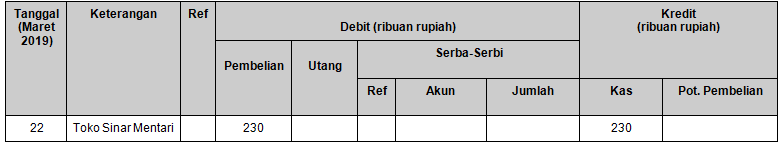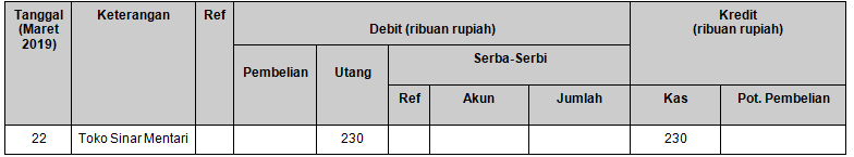 Pencatatan transaksi untuk tanggal 22 Maret 2019 yang benar adalah ….