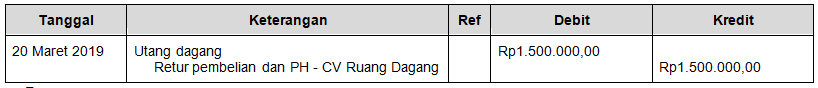 Pencatatan untuk transaksi tanggal 20 Maret 2019 yang benar adalah ….