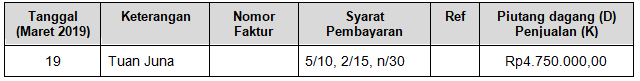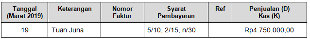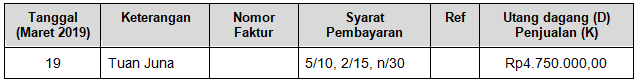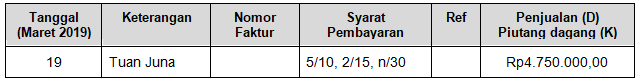 Pencatatan untuk transaksi tanggal 19 Maret 2019 yang benar adalah ….
