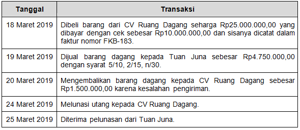 Perhatikan transaksi yang terjadi pada PD Ruang Belanja berikut!