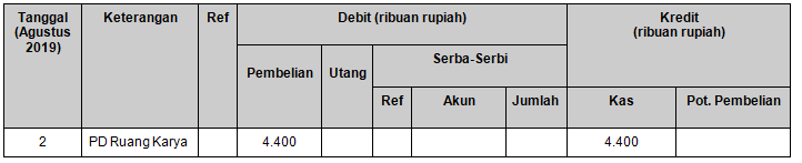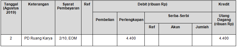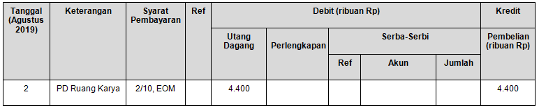 Pencatatan transaksi tanggal 2 Agustus 2019 yang benar adalah ….