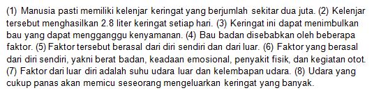 Berdasarkan teks tersebut, bau badan disebabkan oleh dua faktor, yaitu….